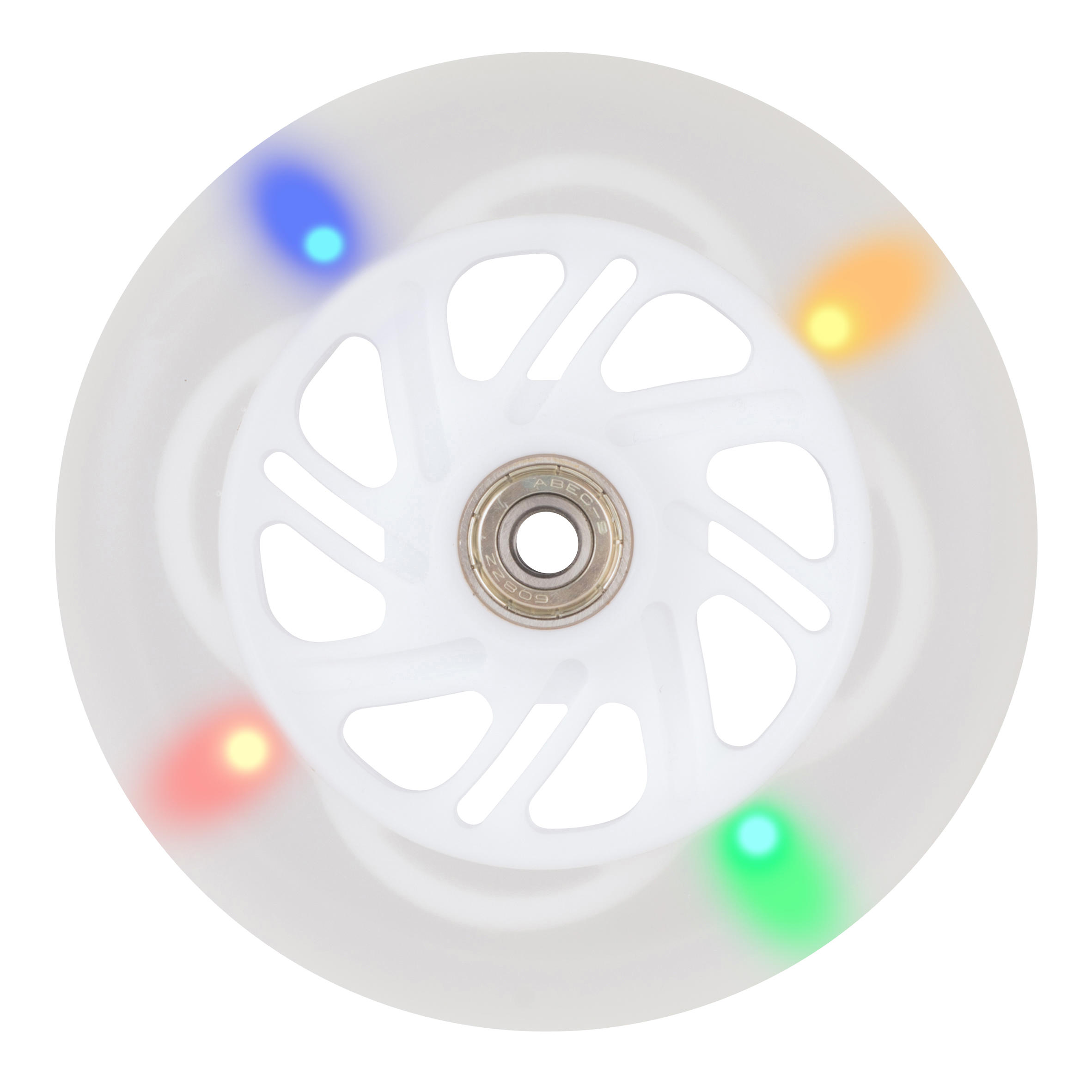 Immer mehr Spaß! Farbig blinkende Rolle mit Kugellager zur Personalisierung deines Scooters und zur Verbesserung des Komforts: guter Grip, weniger Vibrationen.