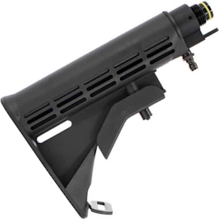 Vergiss das lästige Hantieren mit sperrigen HP-Systemen direkt an deinem Markierer. Der Remote CAR Stock ermöglicht es dir, deine HP-Flasche bequem auf dem Rücken zu tragen, was deine Bewegungsfreiheit enorm erhöht. Stell dir vor, du sprintest mühelos über das Feld, wechselst blitzschnell deine Positionen und behältst stets die volle Kontrolle über deinen Markierer – all das dank des cleveren Designs dieses Hinterschafts.