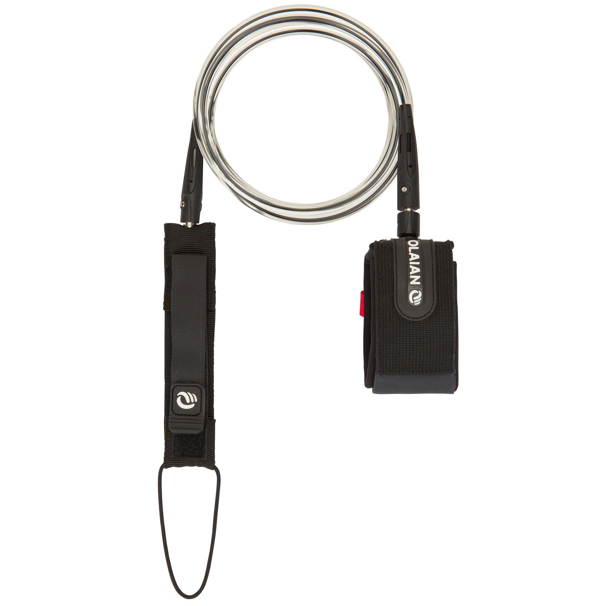 Die Schnur ist bereits am Rail Saver angebracht. Sie muss nur durch das Plug gezogen und mit dem Klettband am Rail Saver gesichert werden. So ist der Rail Saver richtig positioniert.|Vorsicht: Die Leash darf nicht um Hand oder Finger gewickelt sein, wenn man das Brett im Wasser hält. Dies kann zu schweren Verletzungen an den Fingern führen.|Unsere Leashs werden unter Zugeinwirkung getestet, die höher ist als die Norm für Surfboards. Überprüfe immer den Zustand der Leash, bevor du ins Wasser gehst. Hauchdünne Risse können die Strapazierfähigkeit der Leash mindern. Die Leash auswechseln, besonders wenn das Board lange in der Sonne steht.|Verhindert, dass sich die Leash im Wasser verdreht.|Um Tube-Verformungen zu vermeiden.|Schützt das Rail des Brettes vor Schnitten mit der Leash an der Kante.