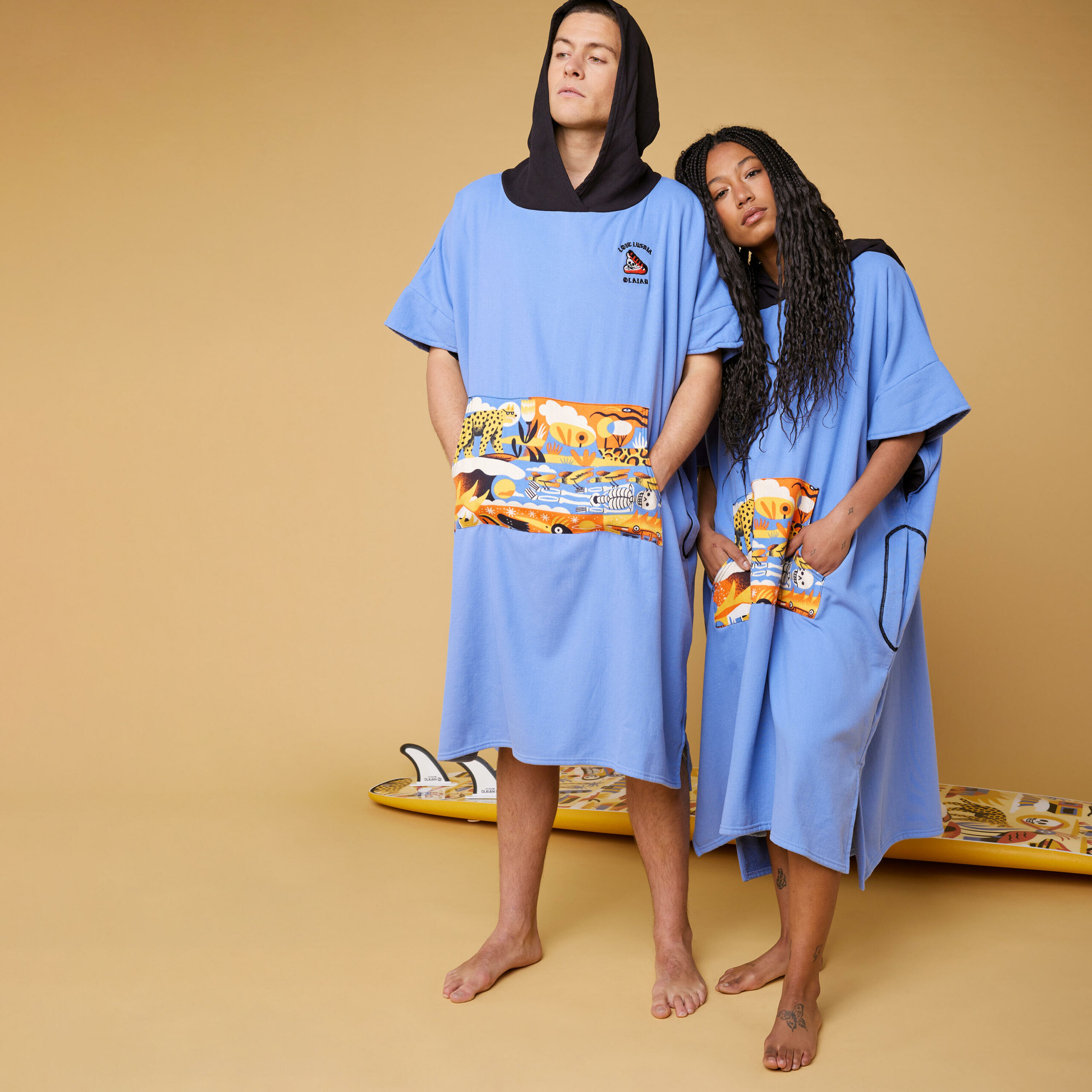 Dieser Surf-Poncho wurde in Zusammenarbeit mit dem talentierten Künstler Loïc Lusnia entworfen und vereint Funktionalität mit einem einzigartigen Design. Er ist nicht nur unglaublich praktisch, sondern auch ein echter Hingucker am Strand. Lass uns einen Blick auf die Details werfen, die diesen Poncho so besonders machen: