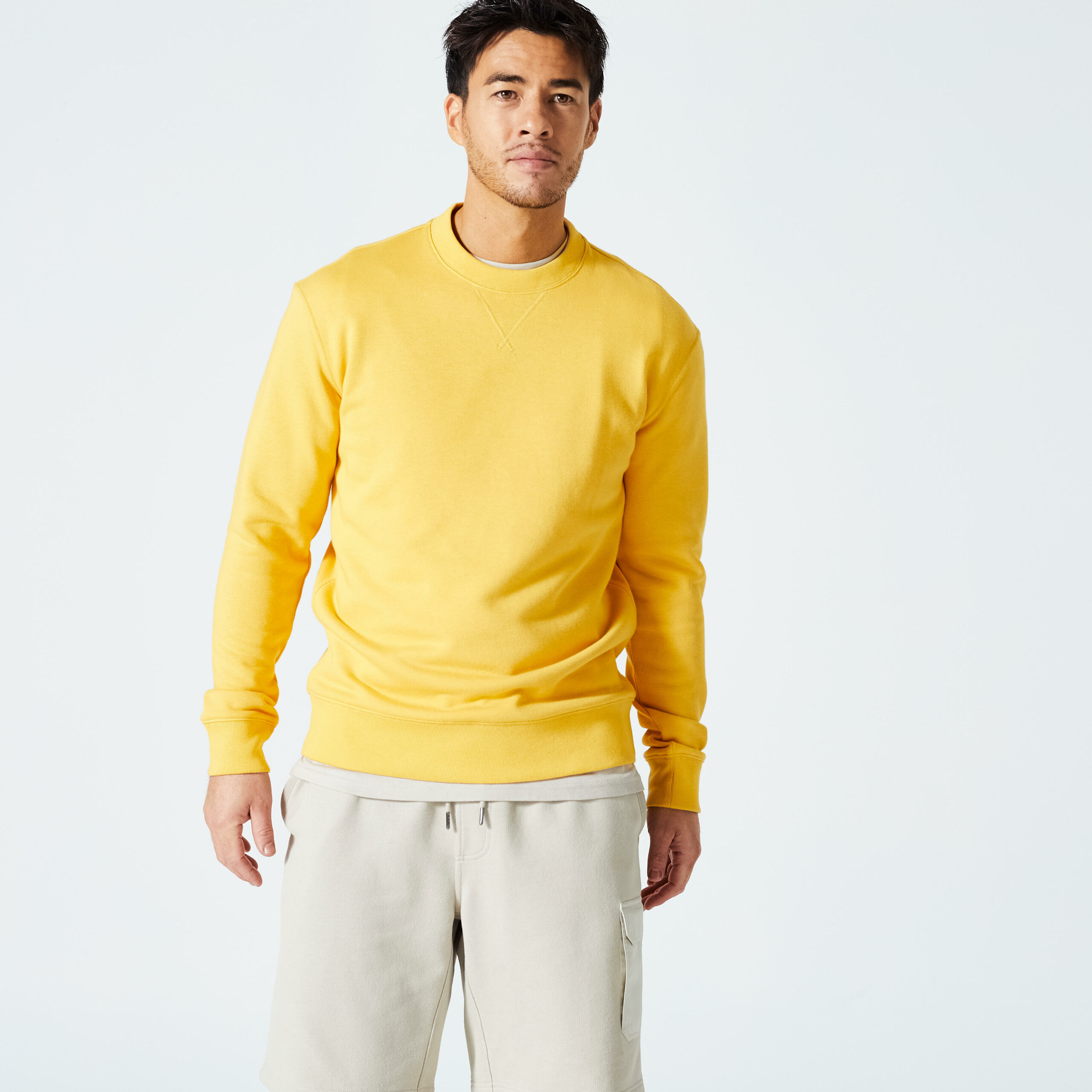 Sweatshirt Herren – 500 Essentials Crew Senfgelb: Dein neuer Lieblingsbegleiter für Sport und Alltag