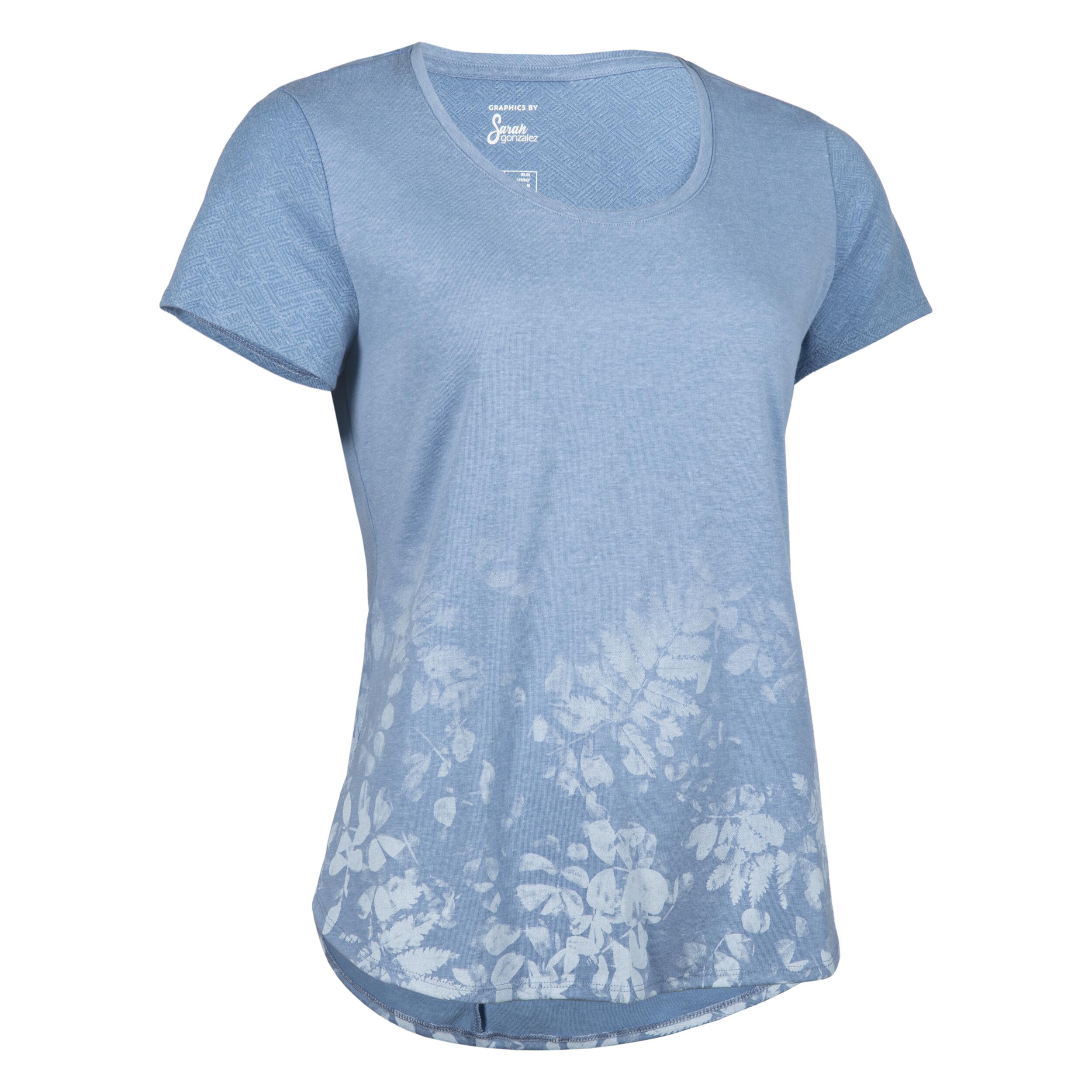 Wandershirt Damen Kurzarm – NH500 blau geblümt: Dein blühender Begleiter für unvergessliche Wanderungen